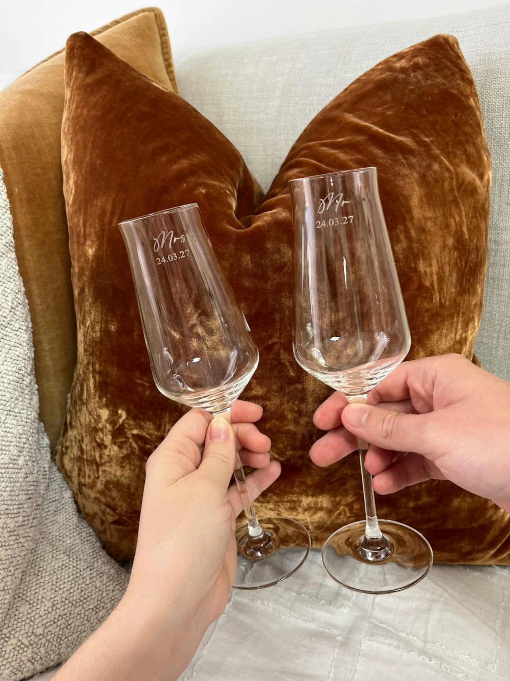 We are so happy with our recent delivery. The glasses are excellent quality and the engraving is very professional. My fiancé and I are so excited to use them for our engagement party and then again on our wedding day.