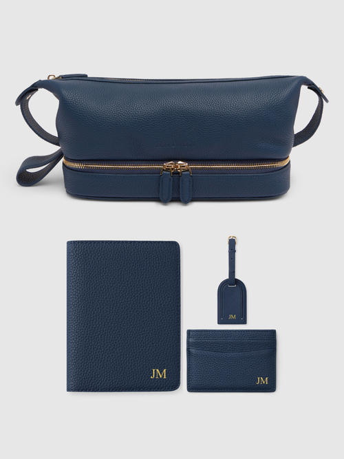 Crafted from premium full-grain leather, the passport holder, wallet card and and luggage tag can be monogrammed with your initials, name, making them uniquely yours (or the perfect thoughtful gift). The washbag, while not personalised, is designed to complement the set perfectly with its refined, minimalist design and spacious interior for all your grooming essentials.